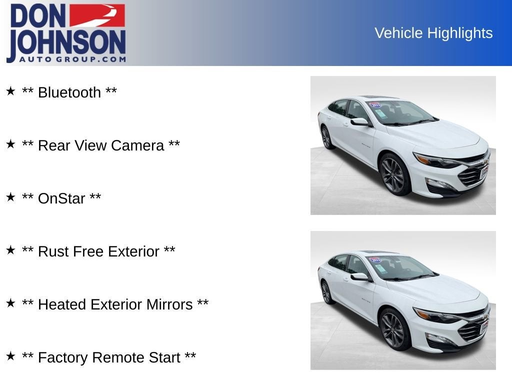 Summit White 2023 Chevrolet Malibu LT 1LT 4D Sedan FWD 1.5L DOHC CVT